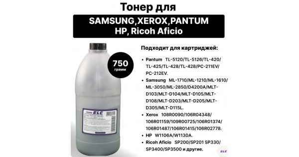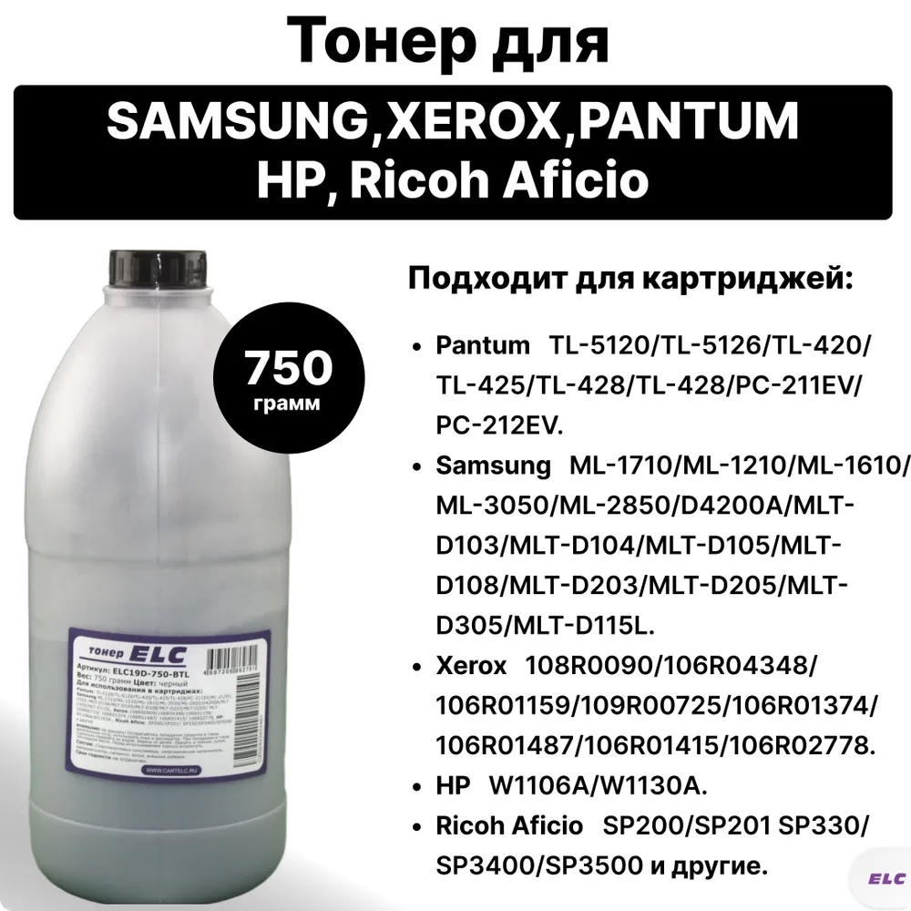 Тонер ELC19D-750 для Pantum/Samsung/Ricoh PC-211EV/TL-420X/TL-5120/ML-1710 банка 750гр. ELC (HG19D)