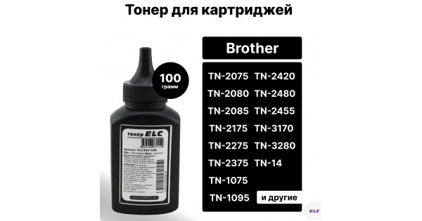 Тонер ELC393-100 для Brother TN-2075/TN-2175/TN-2275/TN-2375/TN-1075/TN-1095 ELC 100гр. бут. (HG393)
