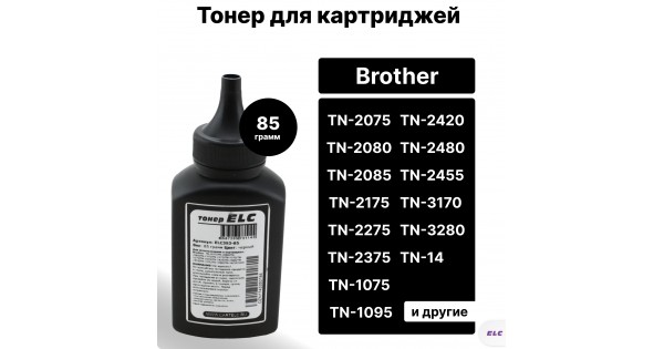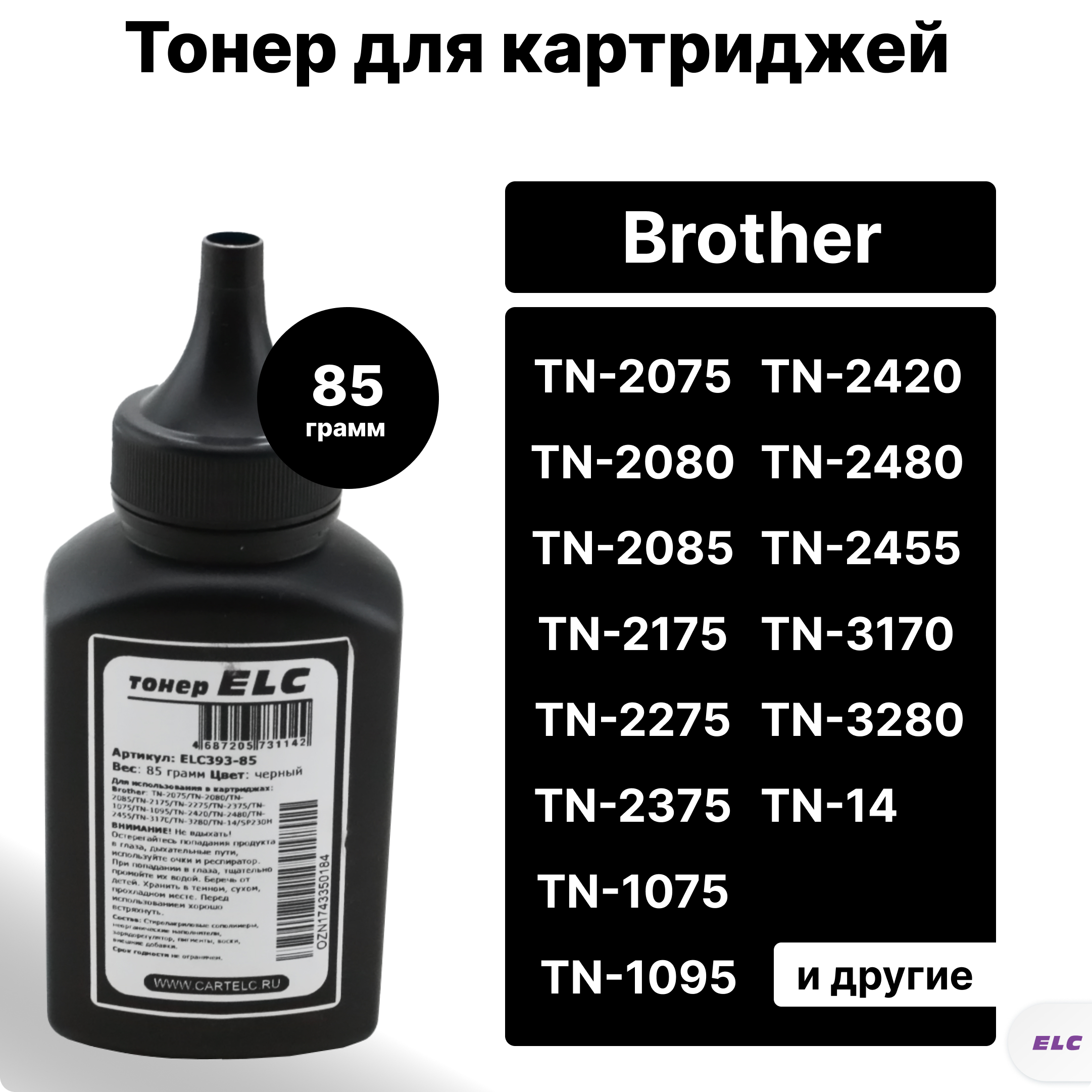 Тонер ELC393-85 для Brother TN-2075/TN-2175/TN-2275/TN-2375/TN-1075/TN-1095 ELC 85гр. бут. (HG393)