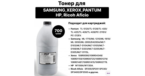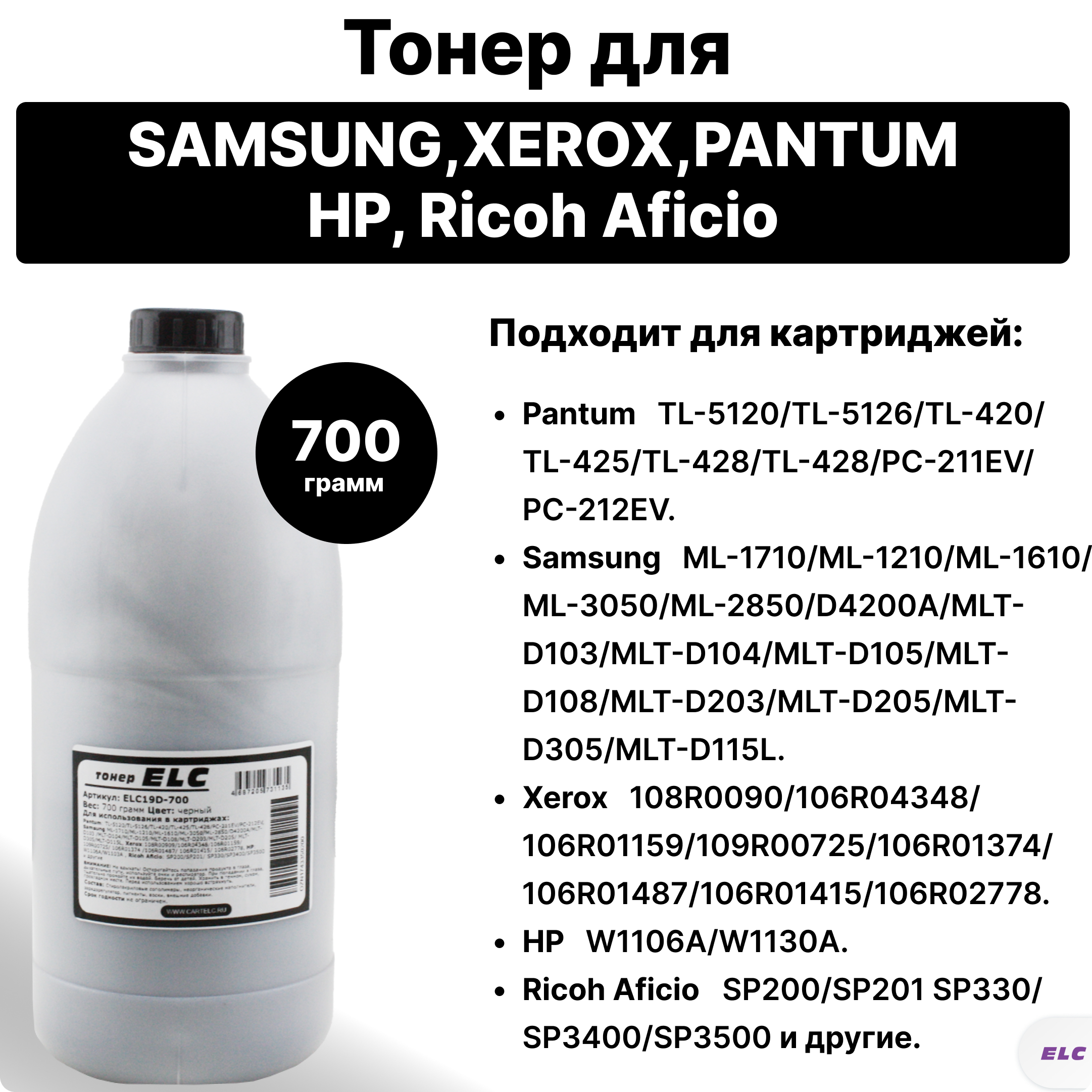 Тонер ELC19D-700 для Pantum/Samsung/Ricoh PC-211EV/TL-420X/TL-5120/ML-1710 банка 700гр. ELC (HG19D)