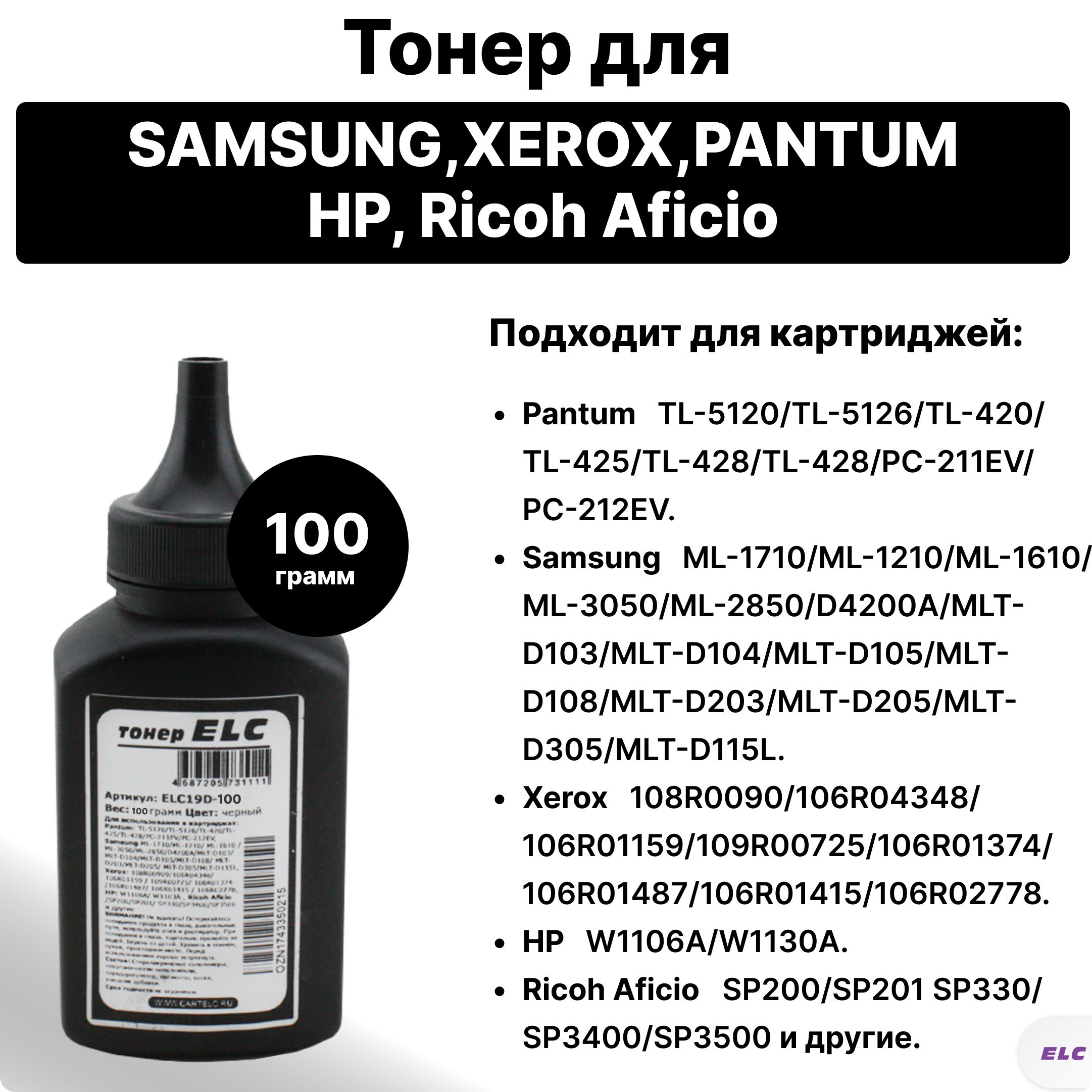 Тонер ELC19D-100 для Pantum/Samsung/Ricoh PV-211EV/TL-420/TL-5120 банка 100гр. ELC (HG19D)