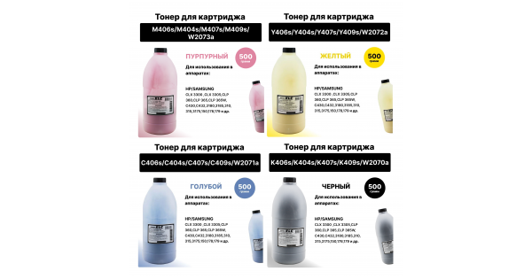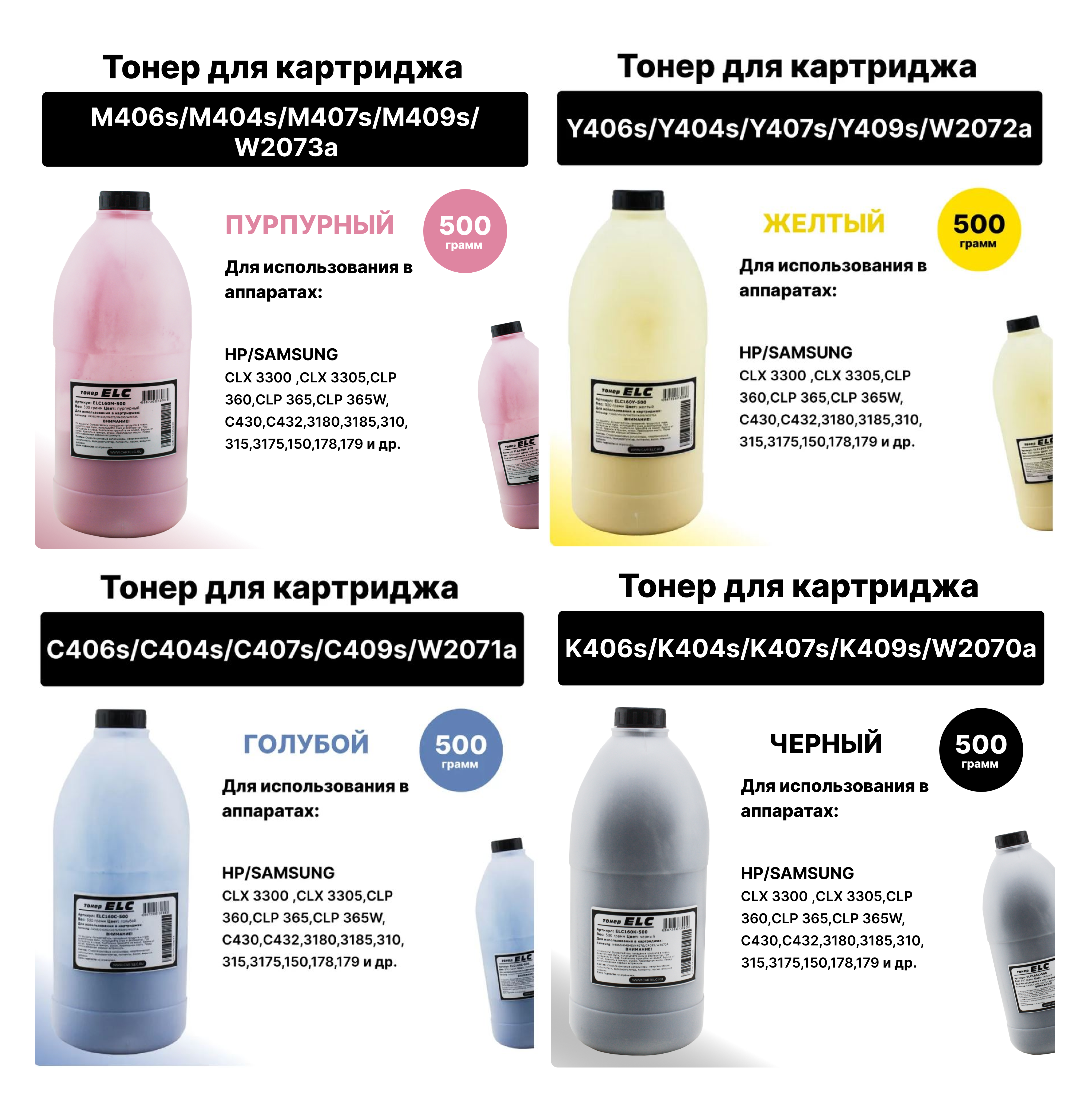 Комплект цветного тонера для Samsung С404S/С406S/С407S/С409S, HP W2071A 500гр.*4цв. ELC (HG160C)